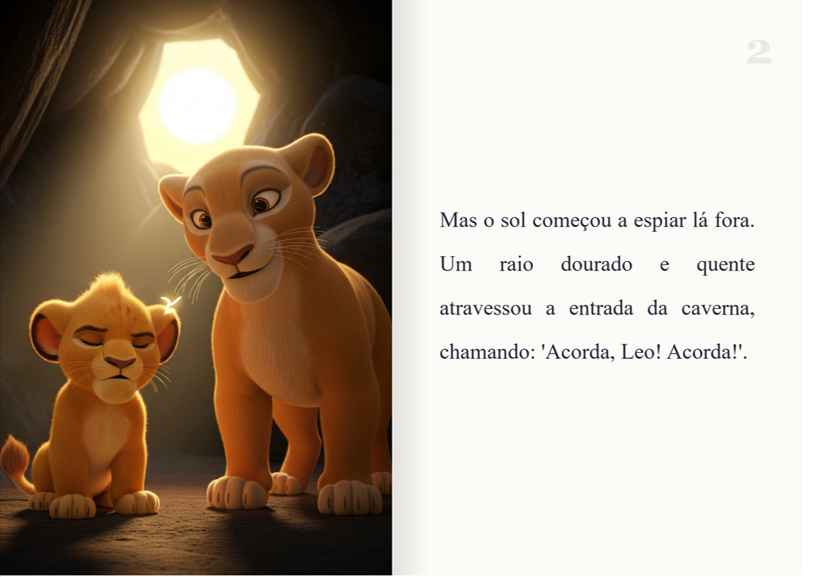 O Despertar do Leãozinho conta a jornada de Leo, um filhote que encontra segurança e coragem através de rituais matinais guiados por sua mãe. A história une princípios da neurociência, como previsibilidade e vínculo seguro, com ensinamentos da sabedoria judaica sobre começar o dia com presença e gratidão.